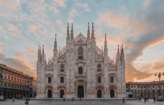 意大利著名的天主教堂,又称“杜莫主教堂”、多魔大教堂,位于意大利米兰市,是米兰的主座教堂,也是世界五大教堂之一,规模居世界第二。于公元1386年开工建造,1500年完成拱顶,1774年中央塔上的镀金圣母玛丽亚雕像就位。1965年完工,历时五个世纪。不仅是米兰的象征,也是米兰市的中心。拿破仑曾于1805年在米兰大教堂举行加冕仪式。