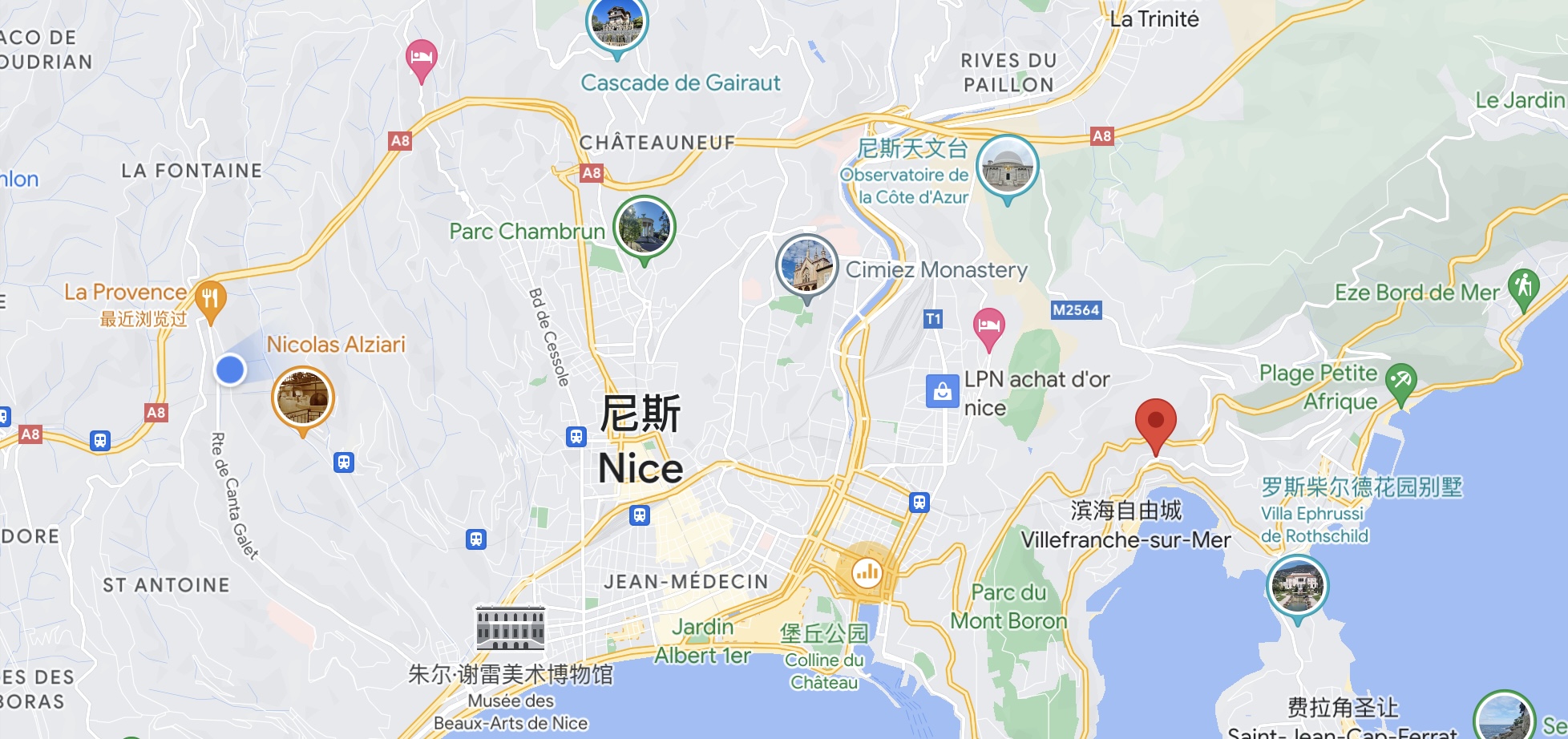 滨海自由城位于尼斯以东约5公里处,是一个拥有着充满历史和文化底蕴的海滨城市。它建于一片天然港口上,是地中海上最大的天然港口之一。这里风景优美,是一个拥有着蔚蓝海水、峭壁、绿树和建筑物构成的画卷。