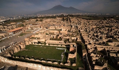 庞贝城是亚平宁半岛西南角坎佩尼亚地区一座历史悠久的古城,西北离罗马约240公里,位于意大利南部那不勒斯附近,维苏威火山西南脚下10公里处。西距风光绮丽的那不勒斯湾约20公里,是一座背山面海的避暑胜地,始建于公元前6世纪,公元79年毁于维苏威火山大爆发。但由于被火山灰掩埋,街道房屋保存比较完整,从1748年起考古发掘持续至今,为了解古罗马社会生活和文化艺术提供了重要资料。